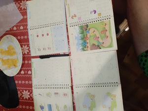 The pages are made of special material that allows writing with a specific pen, which can be wiped clean easily.